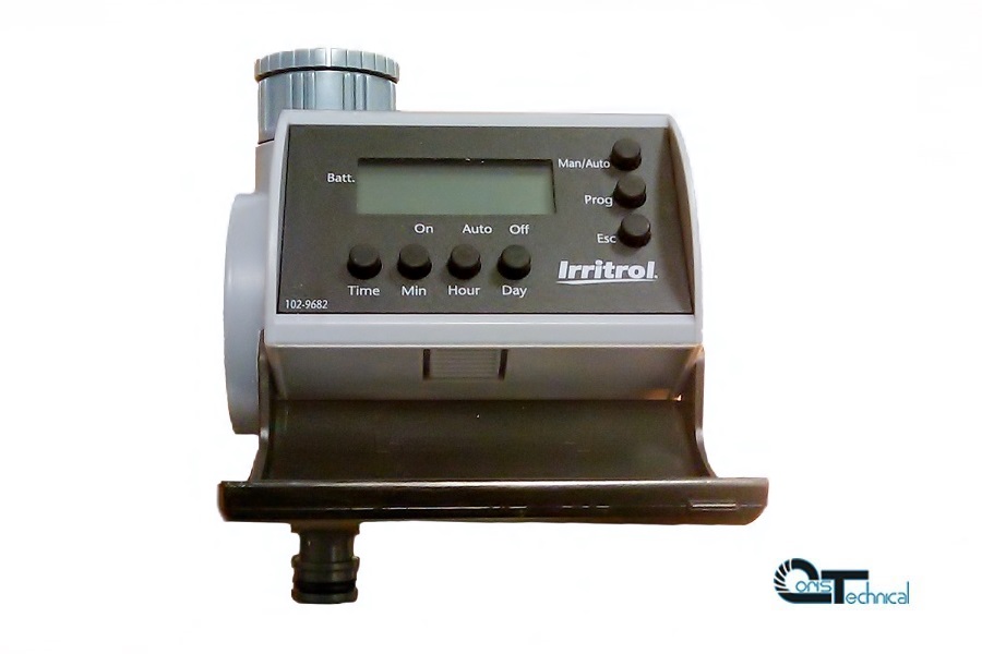 Regolatore Irritrol TAP TIMER elettronico monostazione a batteria 9V con elettrovalvola incorporata. Collegabile ad un rubinetto. Display con coperchio. Programmazione semplice e veloce. Codice IT-ETT
