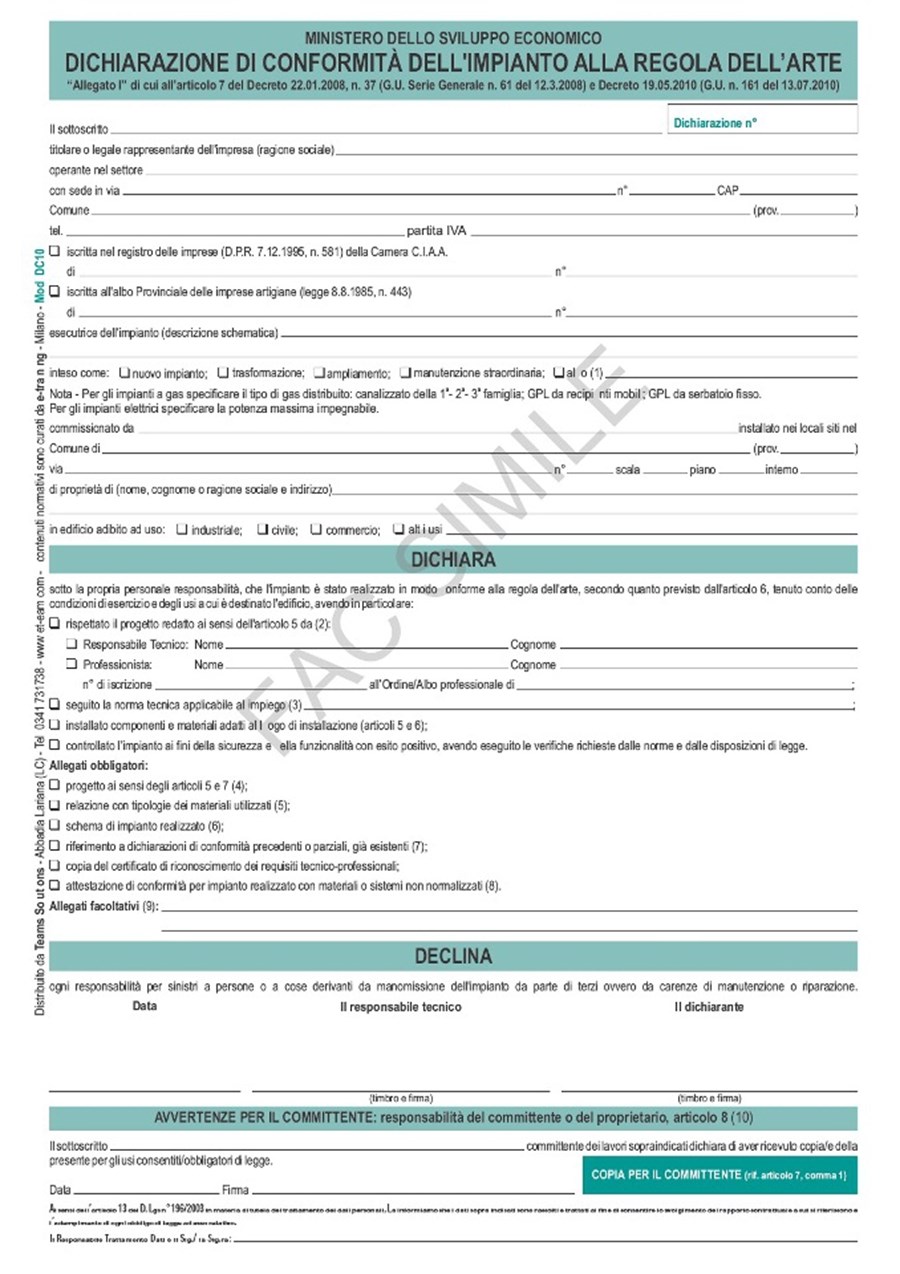 25 Blocchi Allegati Dichiarazione di Conformità Impianti DC10 CF 25 mod