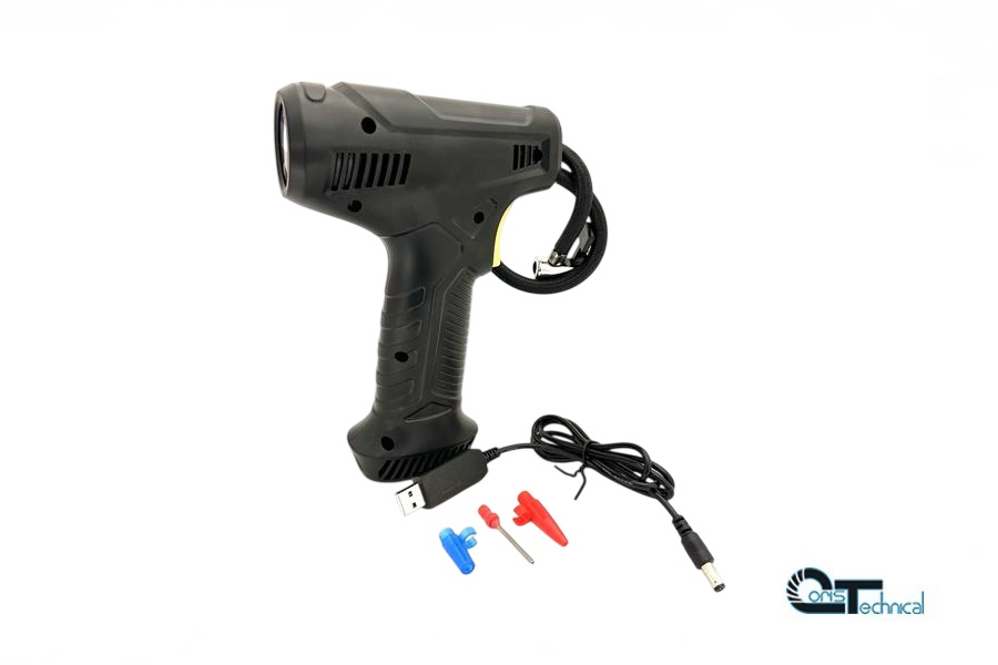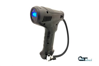Compressore portatile per ricarica vasi ed altro, con display e tubo. Preimpostazione della pressione (max 8 bar). Funzionamento a batteria ricaricabile con cavo a presa usb incluso. Portata 25L/min.